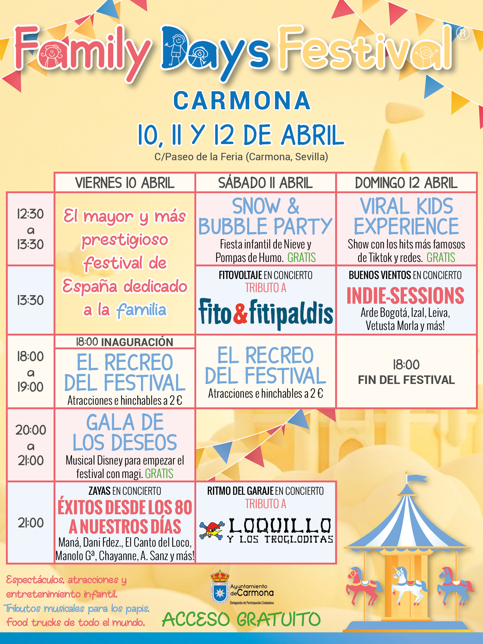 Carmona, os dejamos la programación del Family Days Festival 2026! 🥳